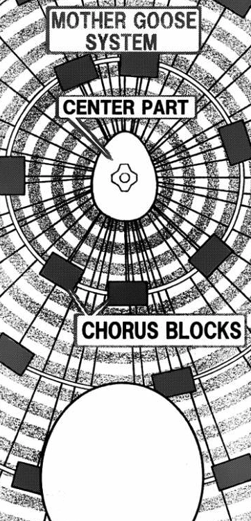 La parte central transmite una canción de cuna para el Huevo Podrido, que sella sus poderes, los bloques de coro aumentan el alcance y la eficacia de la canción de cuna. Cuando Shiro deja de escuchar la canción el Huevo Podrido toma el control sobre ella, de igual manera cuando el volumen de la canción está al máximo el Huevo Podrido se encuentra totalmente sellado.