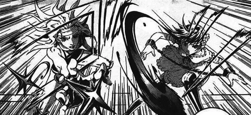 Chaplin and Minatsuki battling Sumeragi.