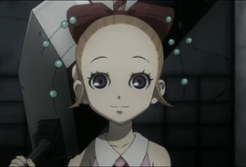 Around 4 years before the start of the series, Hibana was abused by her mother since the day she was born. Her mother did this telling her it would make her a good girl. When some of her kindergarten classmates flipped her skirt, she tortured and killed them afterward. In the anime, she killed her entire class.[1] She was arrested and her only defense was that he did something bad, so she should punish him. In the media, she was labeled as "Punishment". She was taken to Deadman Wonderland and trained as an Undertaker. She is also the reason her mother is dead, saying that "She taught me so well I taught her right back", implying she tortured her mother like she had tortured her.