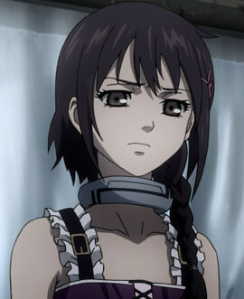 Once she was out of Deadman Wonderland, she grew her hair and now keeps it in a small braid. She usually wears a yellow dress that reaches down to her knees. In her Carnival Corpse, she wore a light pink pantsuit with a long purple dress over it. She also wore white, fingerless gloves. She also wears handcuffs that are connected by a chain, but sometimes the chain appears to be severed. During her fight with Ganta, she used them to block Ganta's attacks.